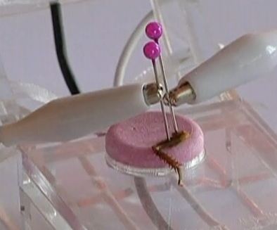 “What we do with the software is we capture how the leg moves to which particular stimulus, so we have lots of different wave lengths in the music and we can find out which one will actually stimulate it in a controlled fashion. So in this way the computer learns how to control the leg.”